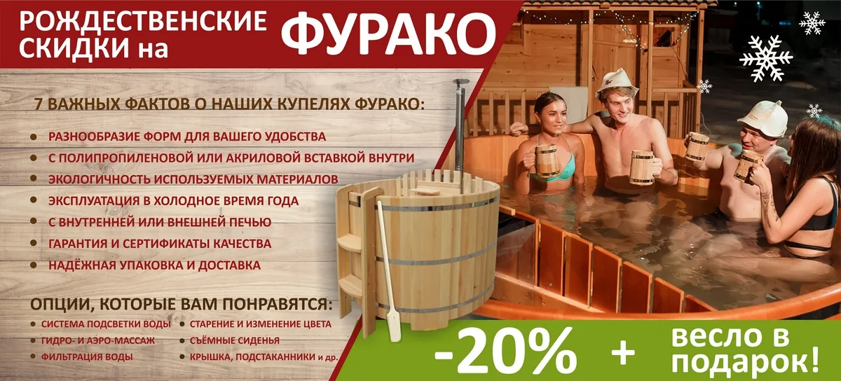* Акция действует до 18 января 2019 г. на все Фурако, кроме купелей с пластиковой вставкой. На Фурако с пластиковой вставкой: скидка -15%.