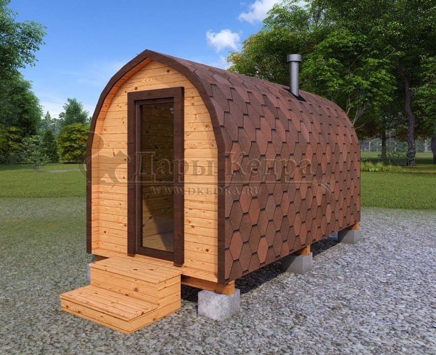 Нравится именно эта модель бани-буханки, просторная и парит хорошо! Мы заказывали с изменением цвета, смотрится достойно. Спасибо за консультацию специалистов компании Дары Кедра и за качественное изделие!