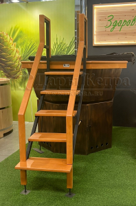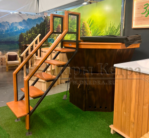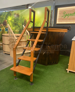 Прочная и удобная лестница из металла с обшивкой из кедра позволит комфортно подниматься и погружаться в воду (5 ступеней и площадка).