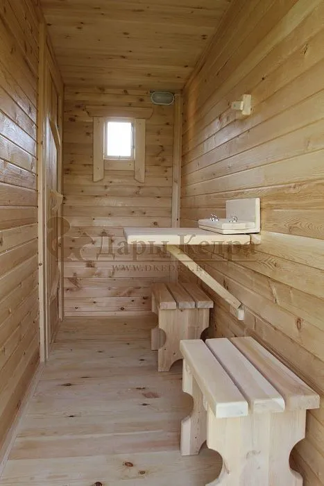 Оригинальное строение в виде бани-бочки, казалось бы, вообще не вариант для обустройства под дом. Но покажем наглядно, какими элементами можно дополнить раздевалку, чтобы баня в виде вагончика функционалом ничем не отличалась от летнего домика. Откидные столики, полочки, коврики, лежанки, зеркала и многое другое создадут уют, стены из кедра добавят тепла и оригинального древесного аромата. Кроме того, если парная выполнена в форме буханки, тут открываются необъятные просторы для дизайна и зонирования комнат для отдыха, спа-процедур. Ведь сама по себе такая форма бани предполагает увеличение пространства за счет ровного пола и увеличенной высоты потолков до 2,3 метра. На примерах уже завершенных проектов можно почерпнуть для себя идеи, добавить что-то свое и получится вполне оригинальный, комфортный дом для проживания летом. Если конструкцию утеплить на стадии строительства, то в таком домике можно проводить даже зимние вечера. Также стоит отметить, что такой дом-баня из кедра отличается не только функционалом, но и своей пользой за счет лечебной древесины кедра.