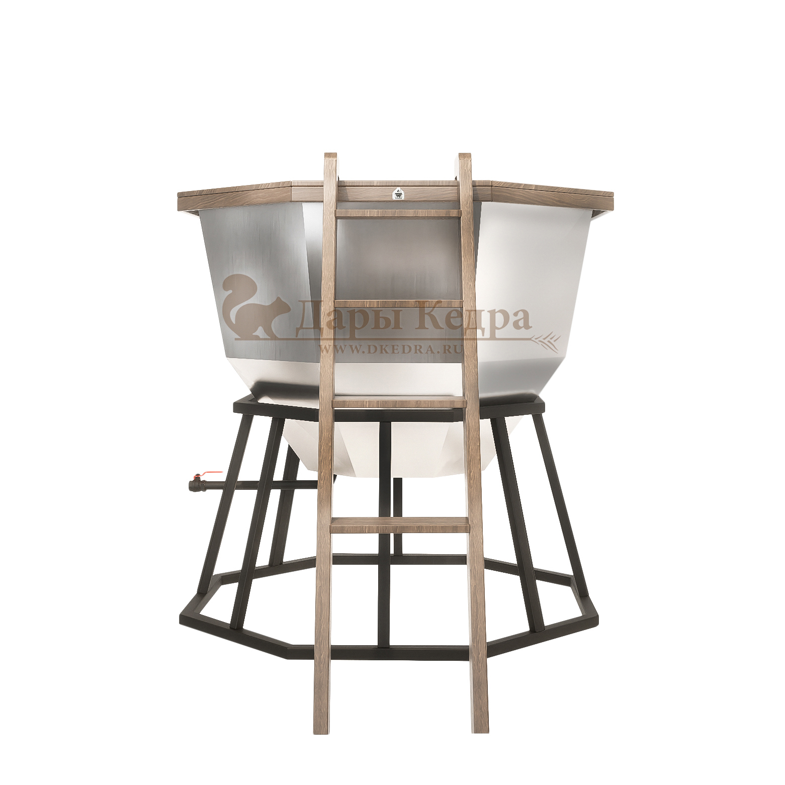 Прочная и удобная лестница из металла с обшивкой из кедра позволит комфортно подниматься и погружаться в воду (5 ступеней и площадка).